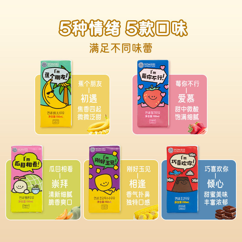 韩国进口延世牛奶饮料草莓香蕉哈密瓜学生儿童早餐奶饮品调味乳