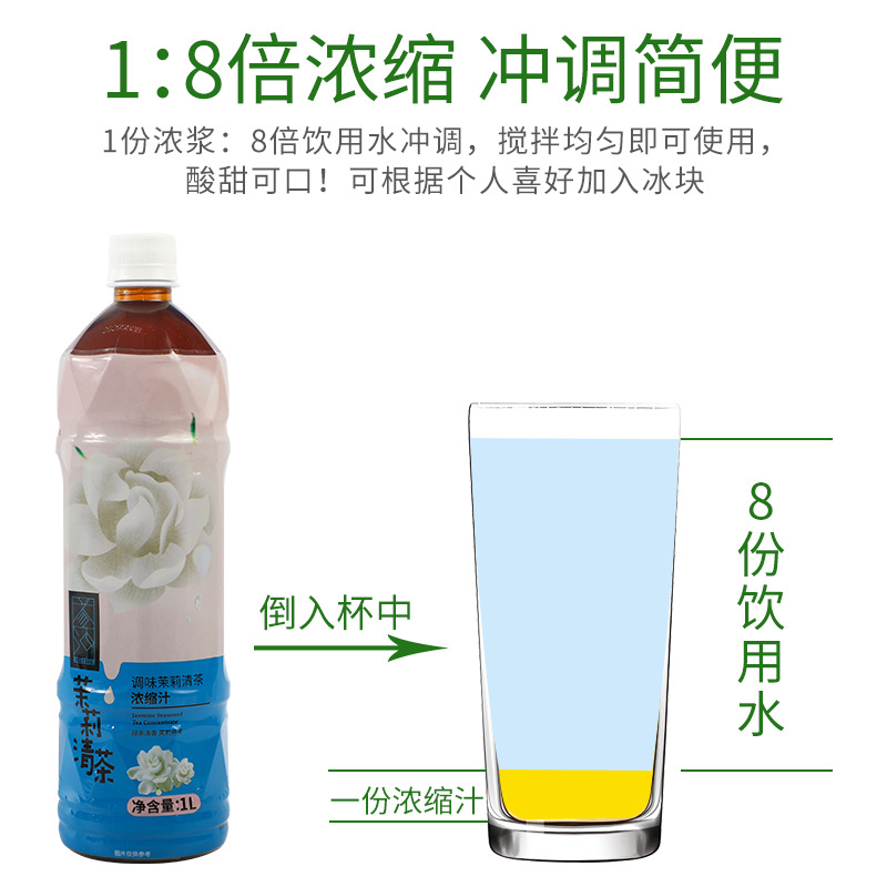 • 商品名称:茉莉清茶浓缩汁1L茉莉茶绿茶饮料餐饮店奶茶店酒店冲调饮品商用