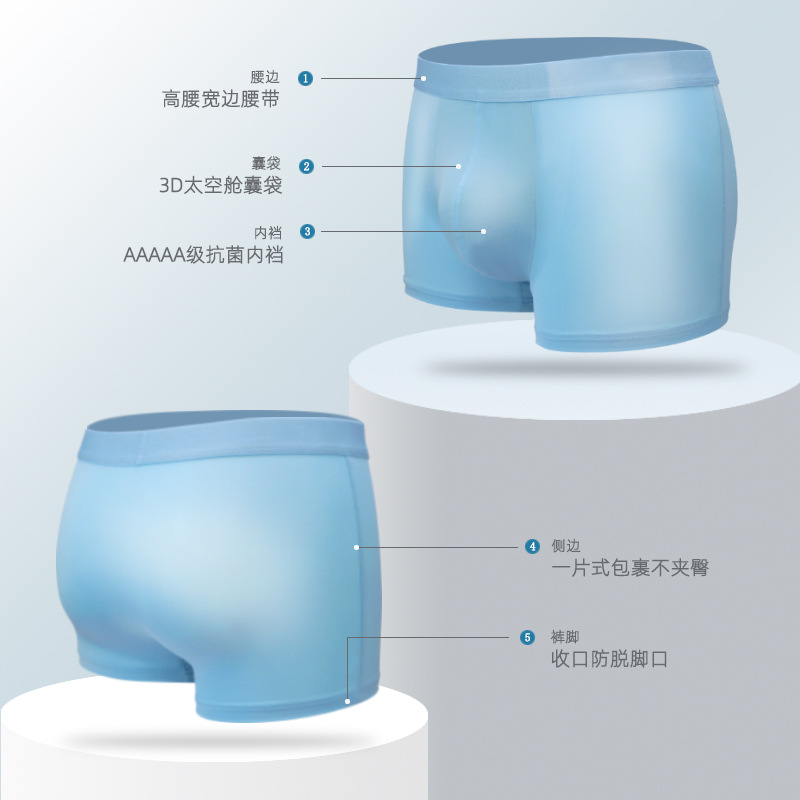 • 商品名称:男士内裤冰丝抗菌独立包装四角内裤夏季舒适大码平角内裤男款
