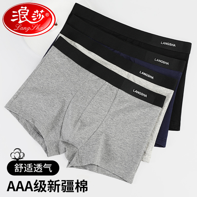 • 商品名称:浪莎男士内裤夏季纯棉四角裤中腰运动透气薄款男生平角短裤头裤衩