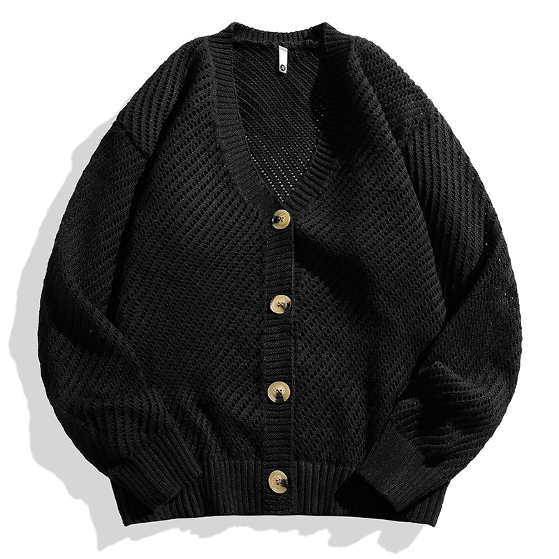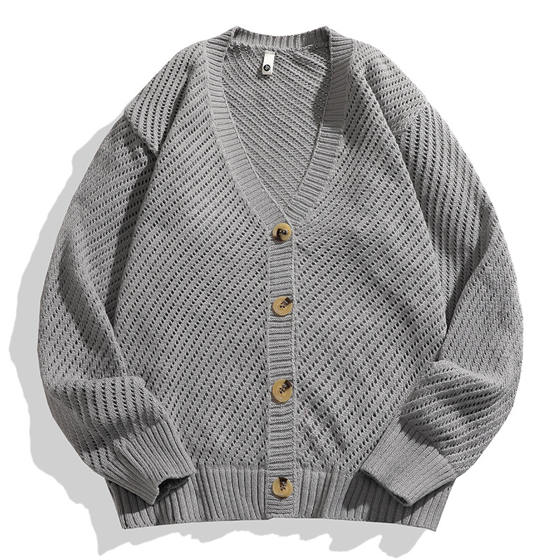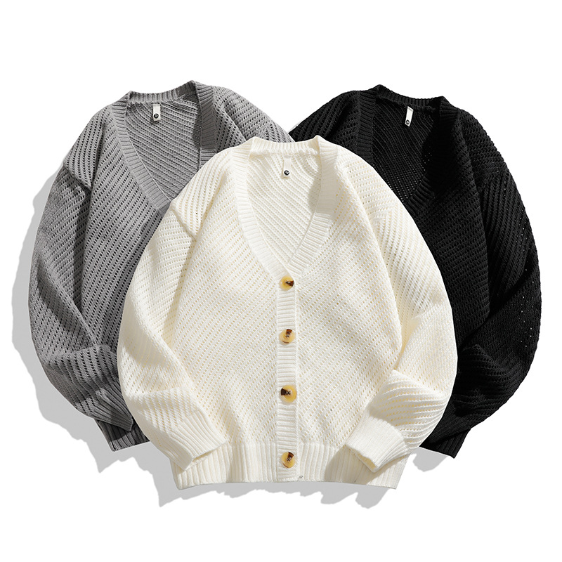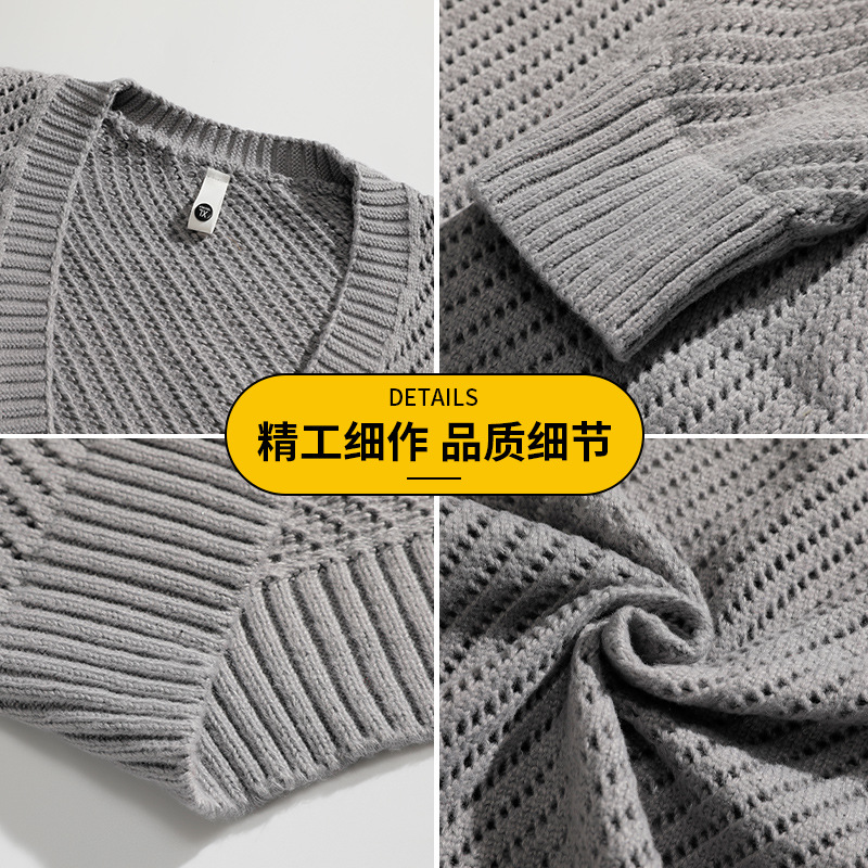 • 商品名称:春秋季新款镂空V领开衫针织衫男士毛衣潮流青年时尚宽松休闲外套