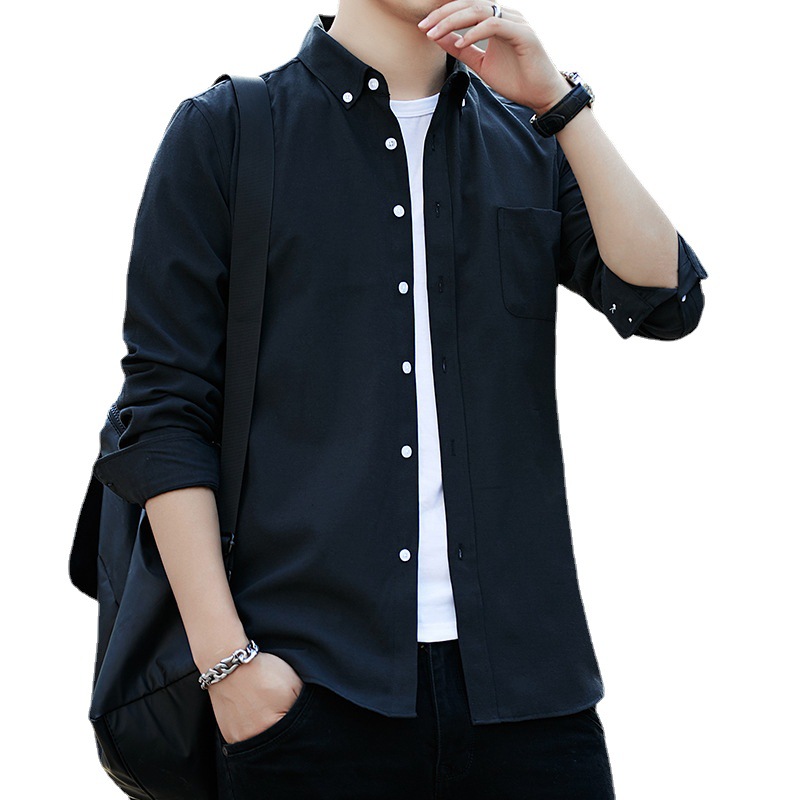 衬衫男士高端商务休闲棉衬衣春季修身牛津纺正装翻领寸衫男装