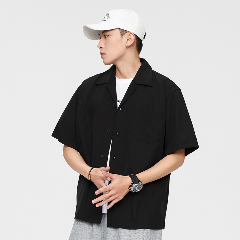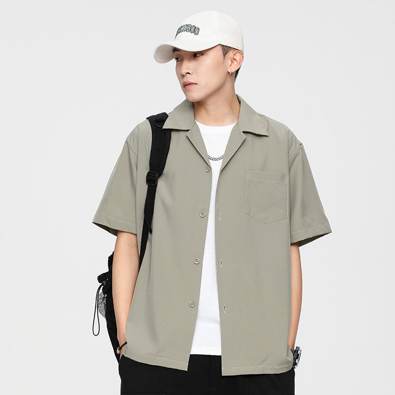 東雨2023男装夏季短袖衬衫夏威夷宽松纯色休闲翻领普通短袖衬衫男