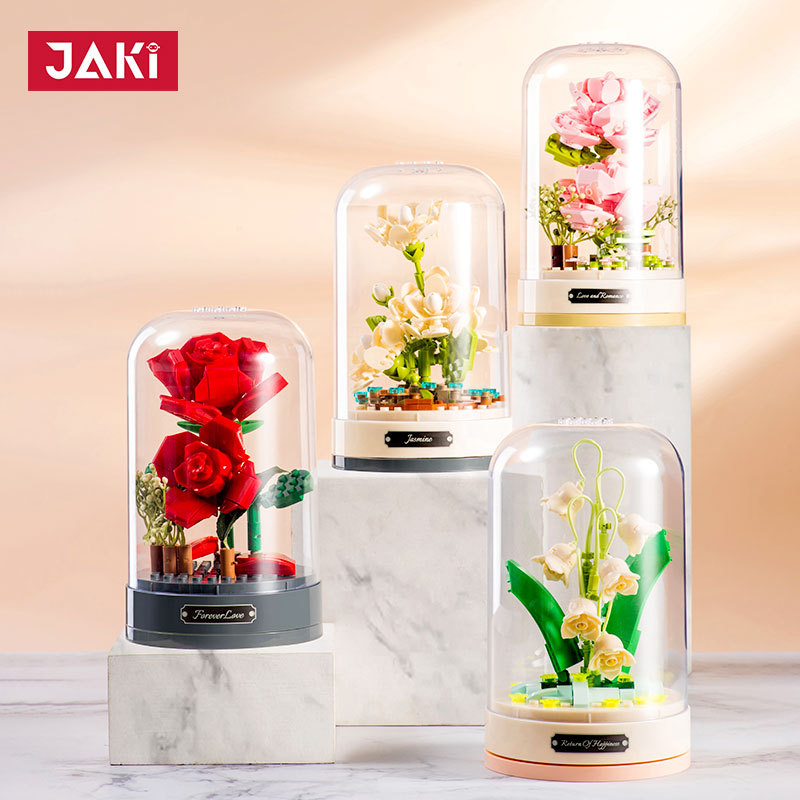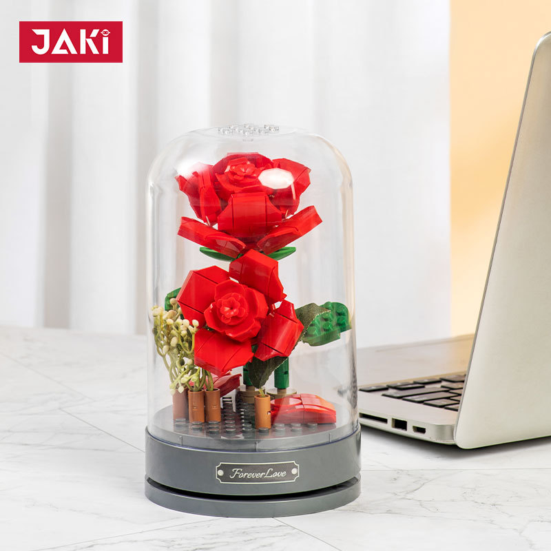 • 商品名称:佳奇音乐盒积木玫瑰花朵永生女生礼物仿真花拼装摆件跨境JK2675