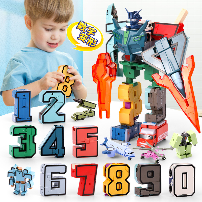 • 商品名称:锦江新款儿童数字变形玩具机器人金刚字母拼装积木益智男孩汽车