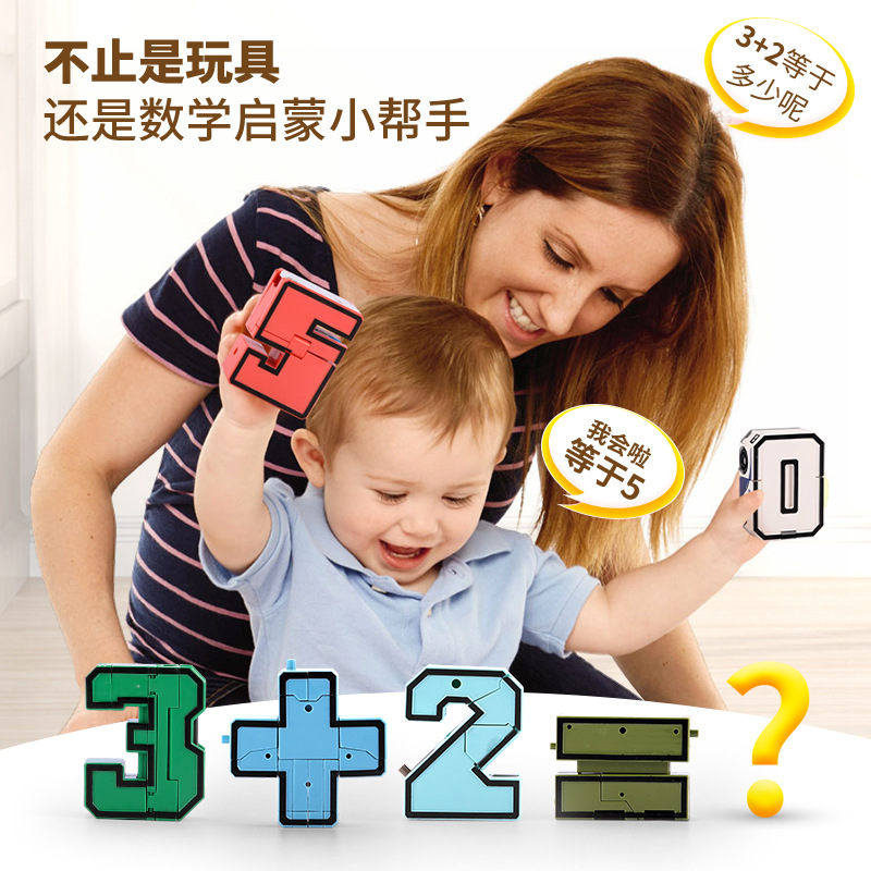锦江新款儿童数字变形玩具机器人金刚字母拼装积木益智男孩汽车