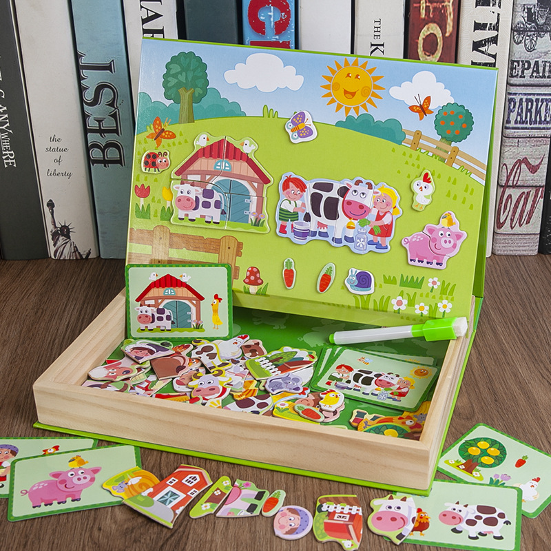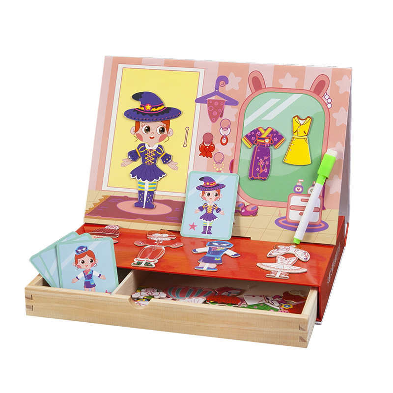 • 商品名称:幼儿园生日礼物儿童益智磁性卡通人物女孩换装衣木制拼图画板礼盒