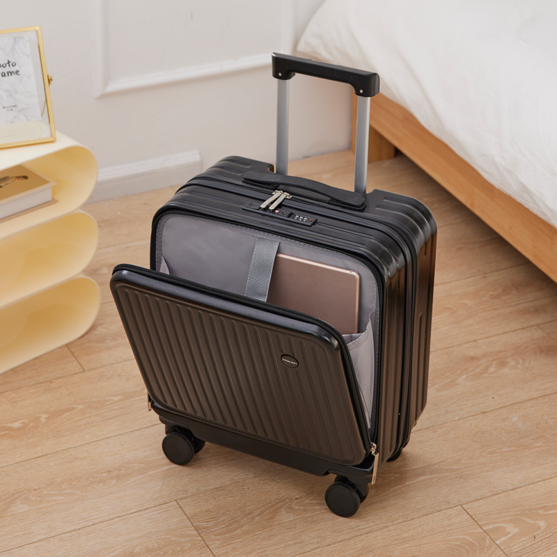 • 商品名称:前置开口拉杆箱万向轮18寸小型登机箱男女旅行箱轻便行李箱密码箱