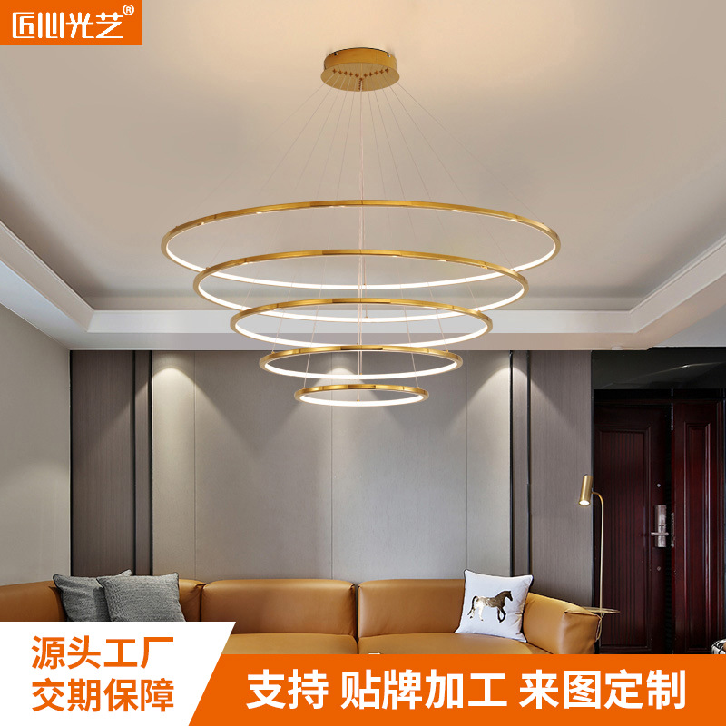 • 商品名称:现代轻奢复式楼梯酒店大厅圆圈不锈钢工程样板房展厅客厅吊灯