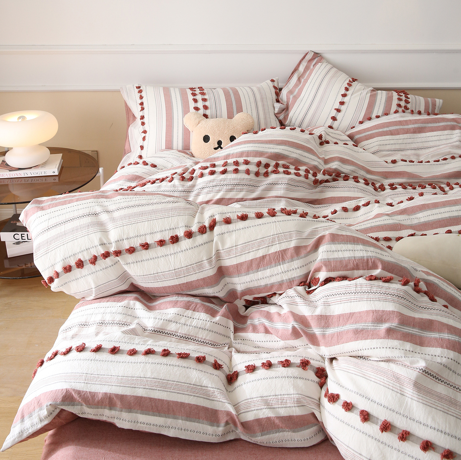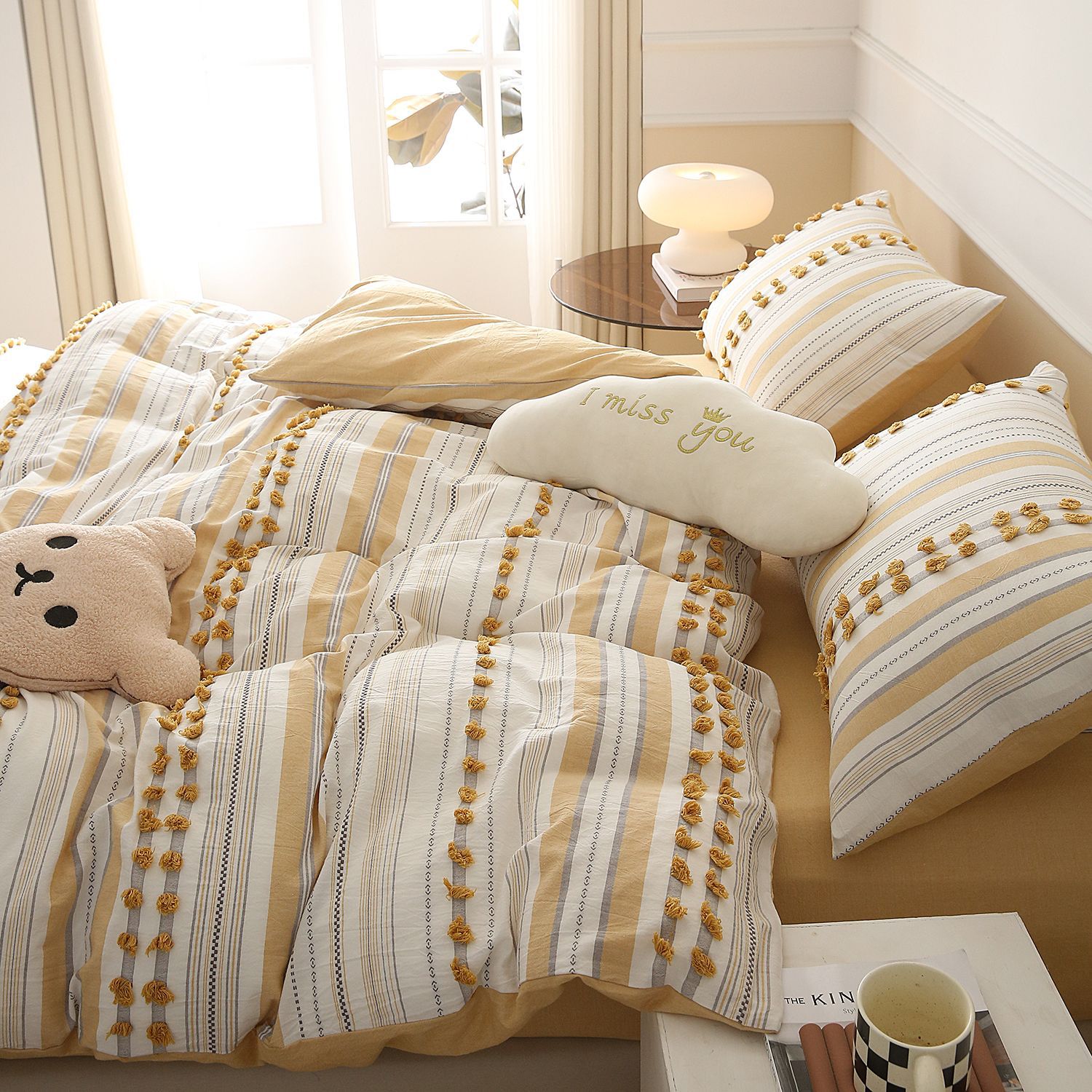 新款ins风简约水洗棉亲肤套件 特色提花剪花色织水洗棉套件 现货