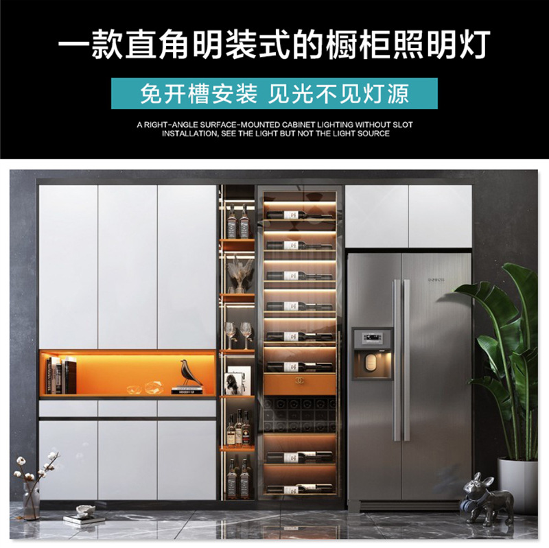 扇型45度斜发光灯槽免开槽直角衣柜橱柜层板线条灯金属套件
