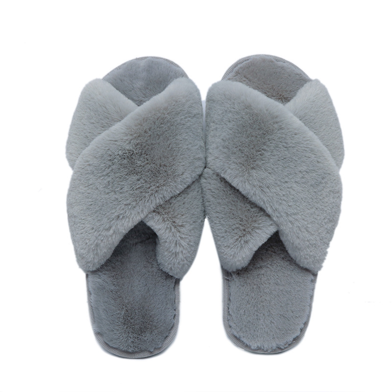 • 商品名称:跨境外贸亚马逊交叉毛毛拖鞋女秋冬平底家居家地板拖露趾棉拖鞋女