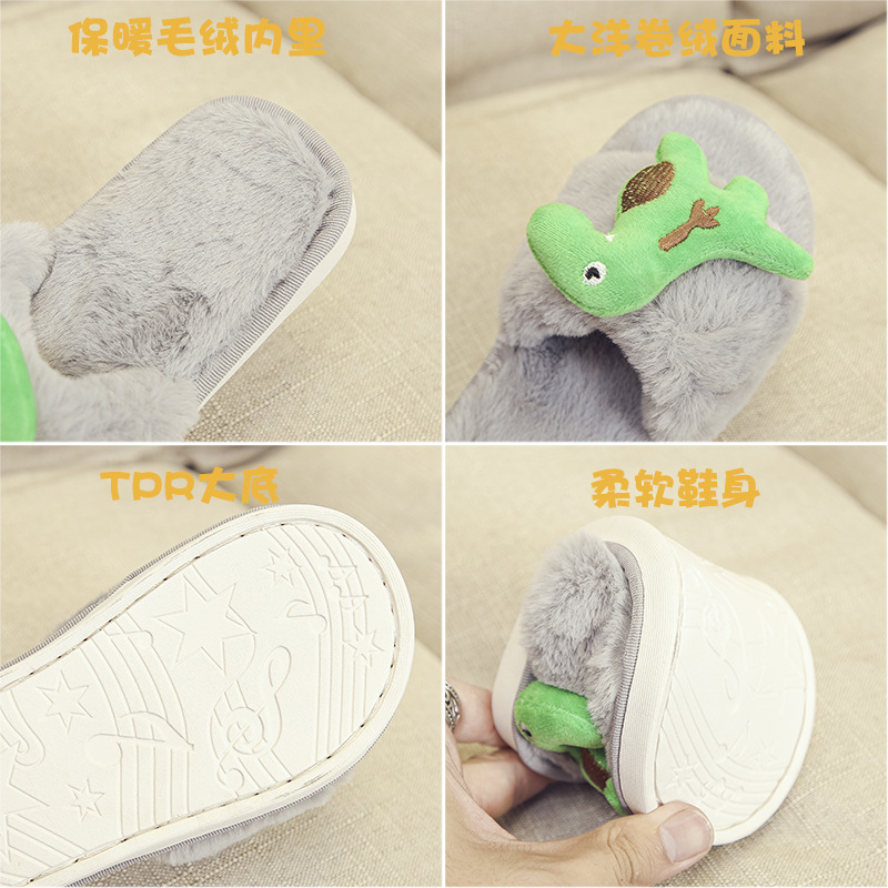 棉拖鞋儿童拖鞋女男秋冬宝宝小孩公主中大童亲子毛茸茸卡通动物拖