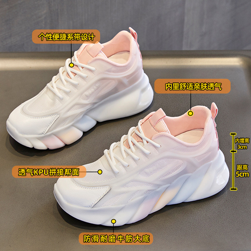 • 商品名称:内增高皮面鞋女2023新款运动鞋女夏东达鞋业透气休闲老爹鞋