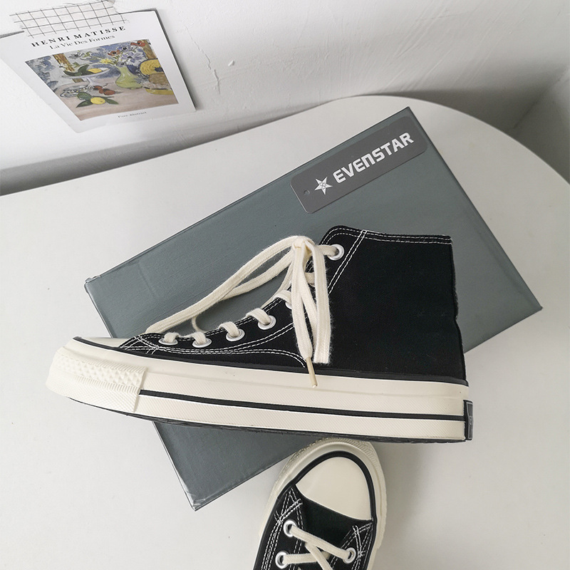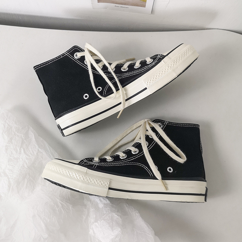• 商品名称:远益2024新款韩版ulzzang万年款黑色高帮帆布鞋女学生板鞋男街拍
