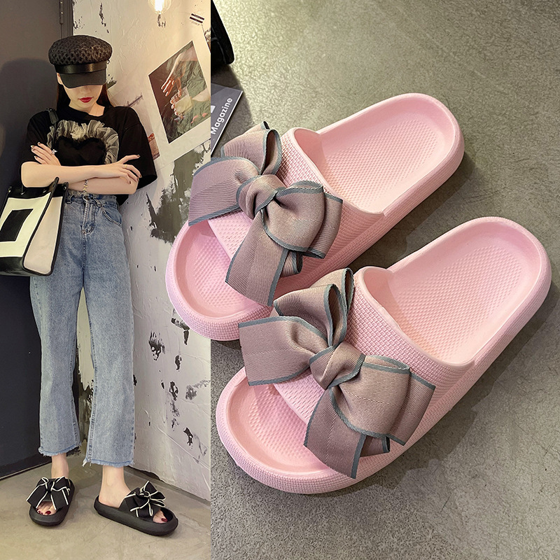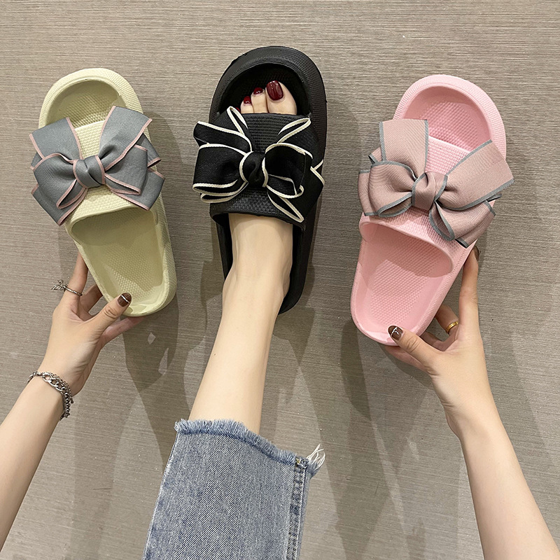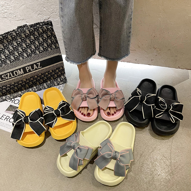 • 商品名称:2024踩屎感凉拖鞋ins蝴蝶结厚底情侣浴室拖鞋夏季女eva拖鞋