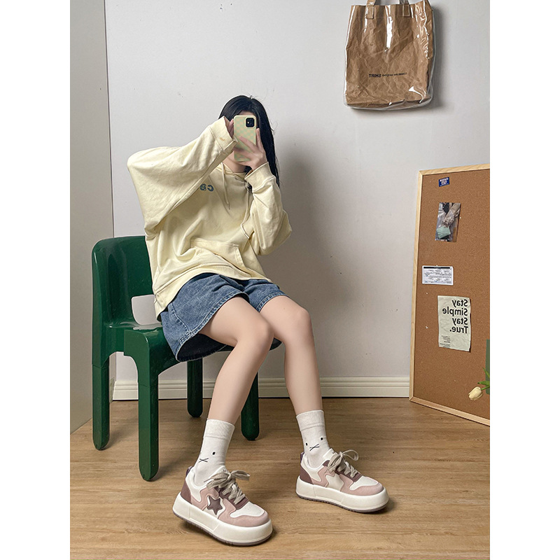 白鹿热卖拼色新品星星鞋子女丑萌面包休闲鞋2023新款厚底鞋女