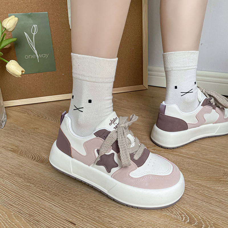 • 商品名称:白鹿热卖拼色新品星星鞋子女丑萌面包休闲鞋2023新款厚底鞋女
