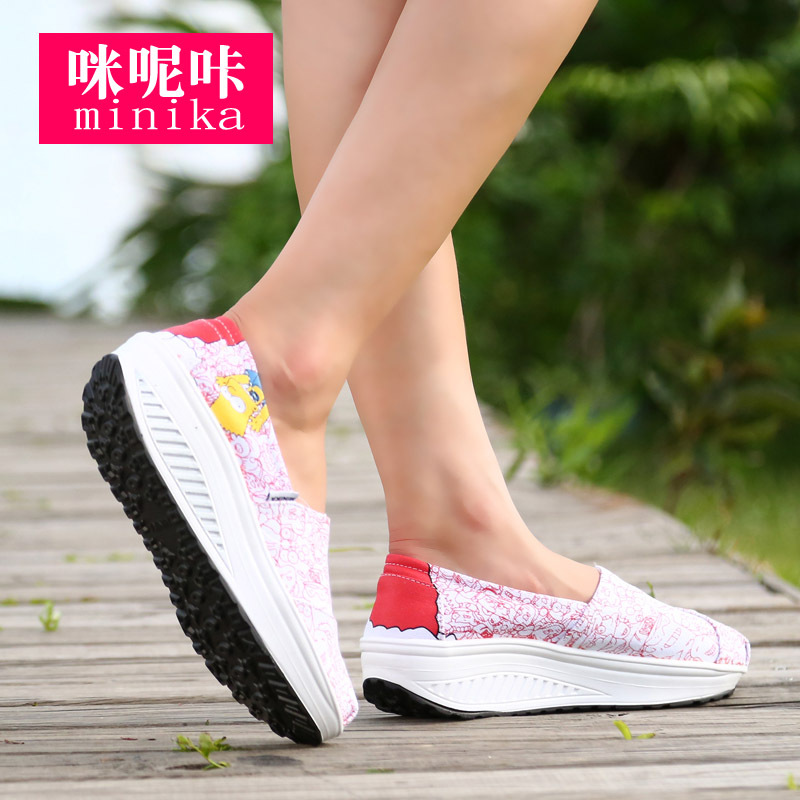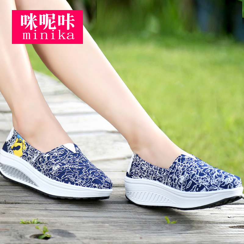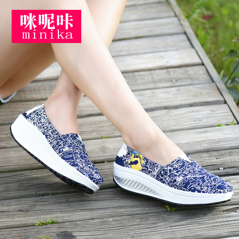 2023春季休闲低帮坡跟厚底女士摇摇鞋懒人鞋一脚蹬圆头帆布鞋1514
