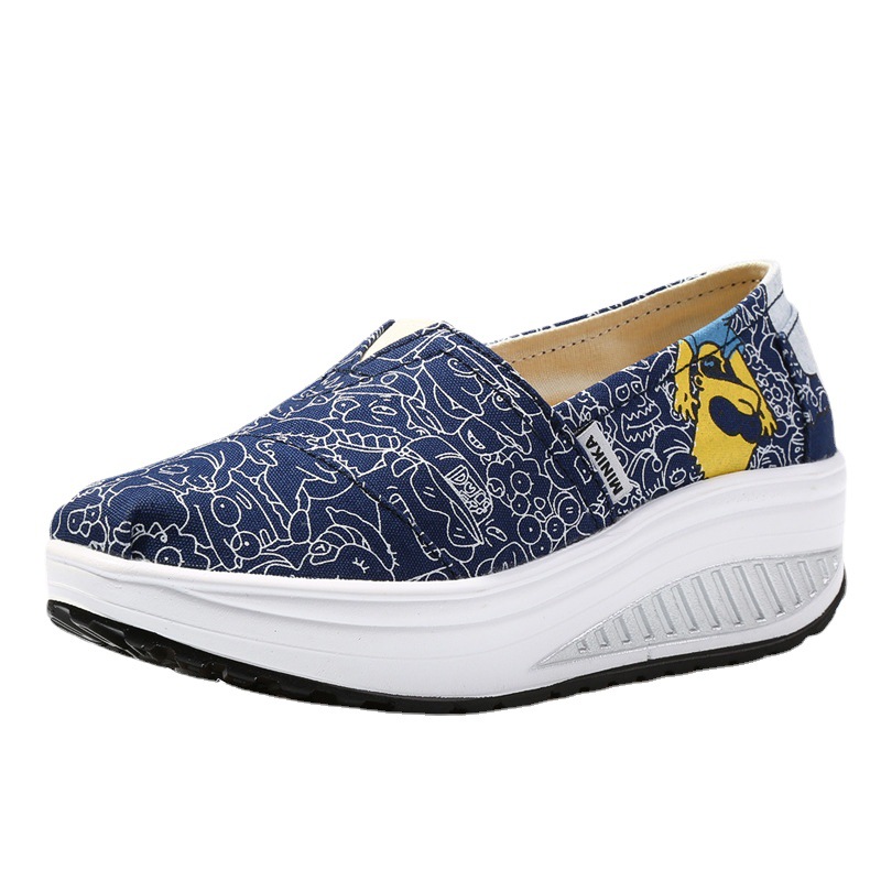 • 商品名称:2023春季休闲低帮坡跟厚底女士摇摇鞋懒人鞋一脚蹬圆头帆布鞋1514