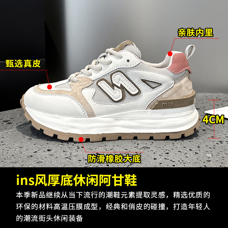 • 商品名称:真皮韩版阿甘鞋老爹鞋女2024春季新款圆头厚底舒适运动时尚休闲鞋