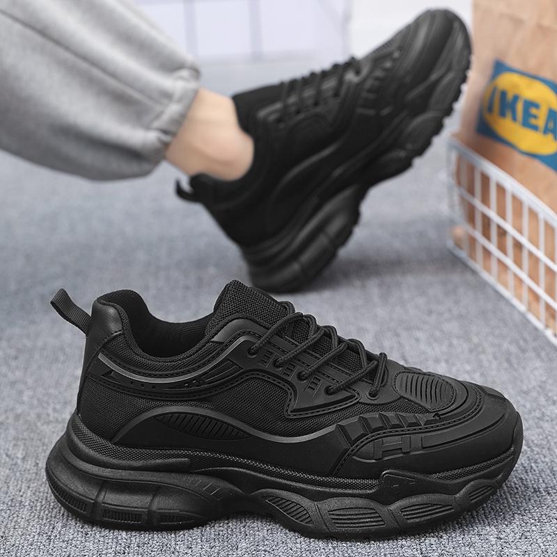 • 商品名称:全黑运动鞋男开学季学生老爹鞋ins潮透气网跑鞋韩版厚底增高男鞋
