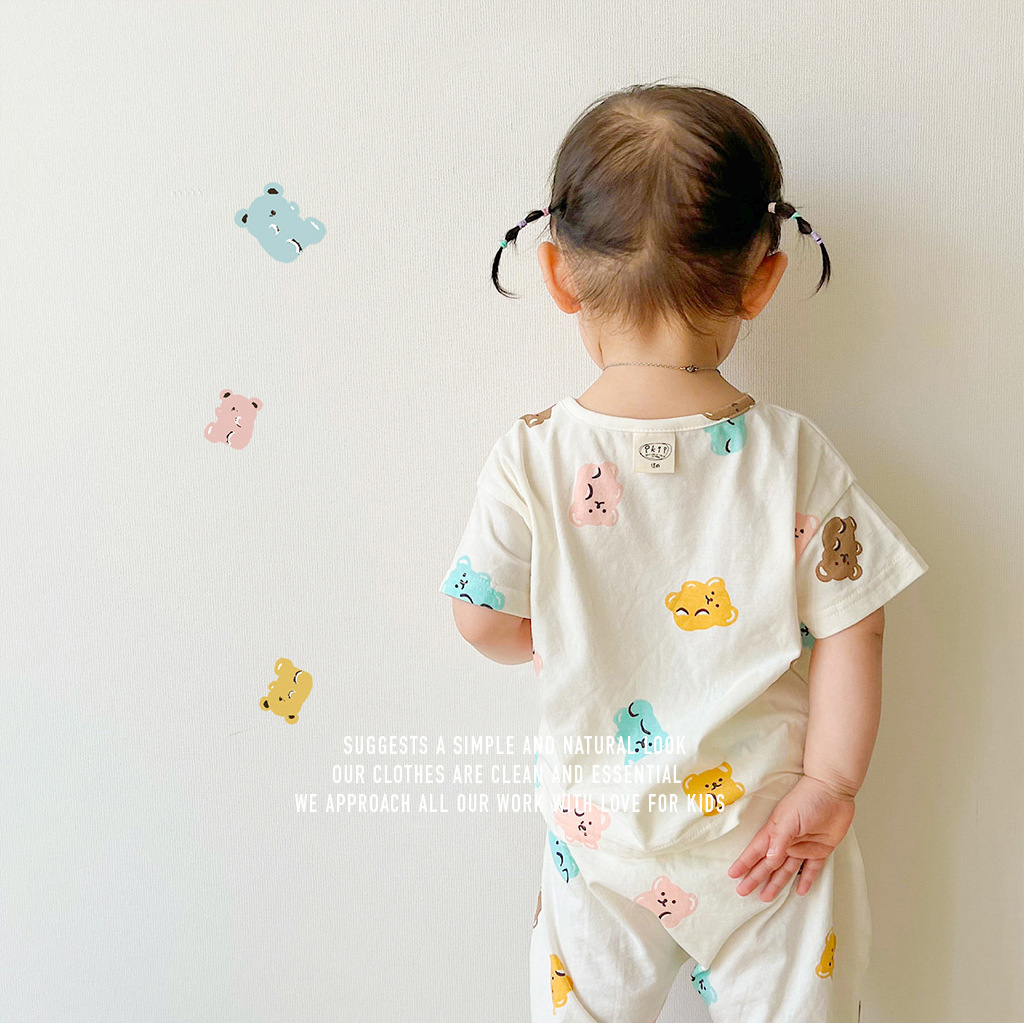 • 商品名称:2024夏季新款韩版儿童套装ins风小熊印花两件套婴幼儿短袖套装
