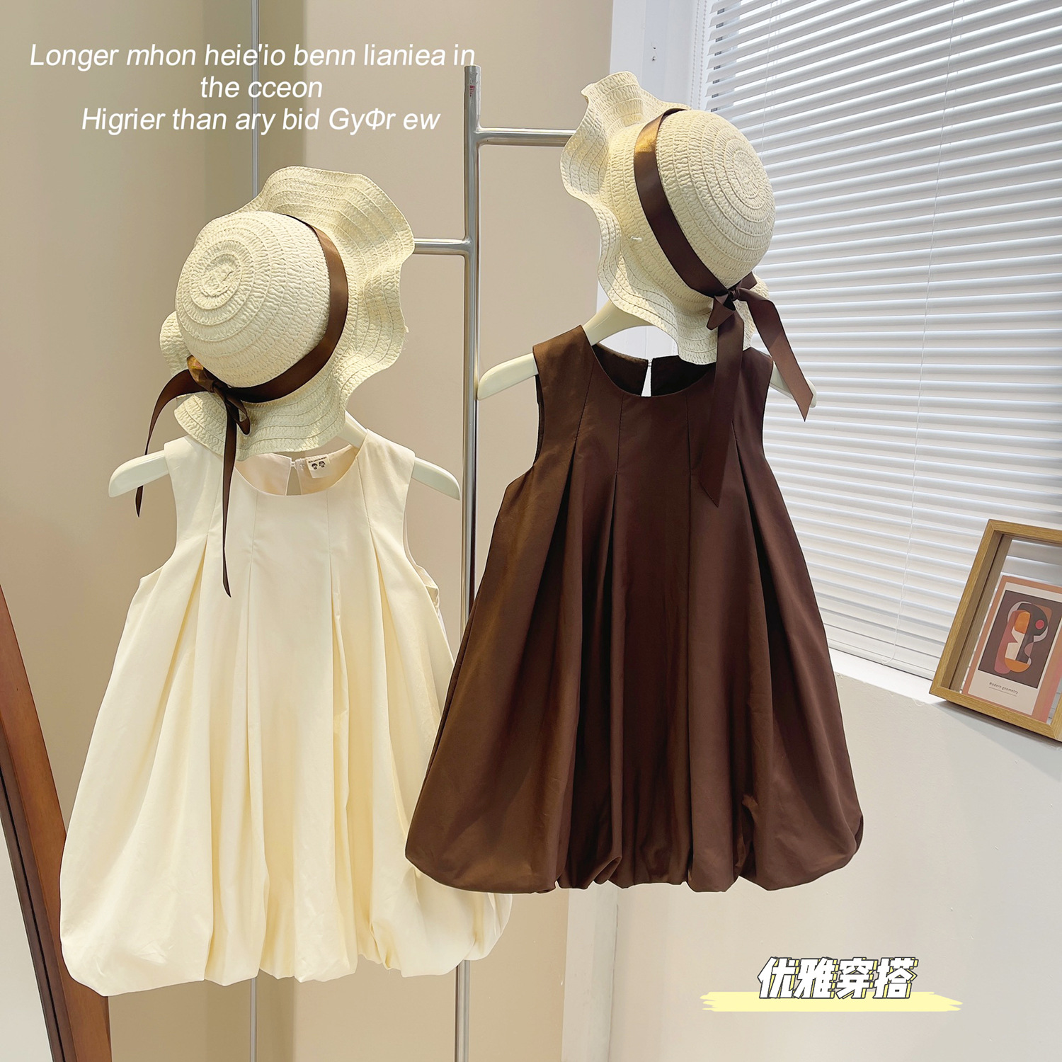 • 商品名称:法式简约洋气公主裙女童纯色百褶花苞气质背心连衣裙2024夏装新款