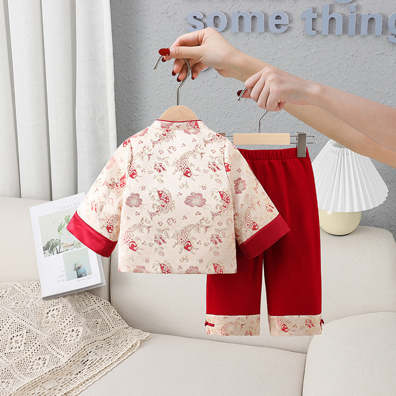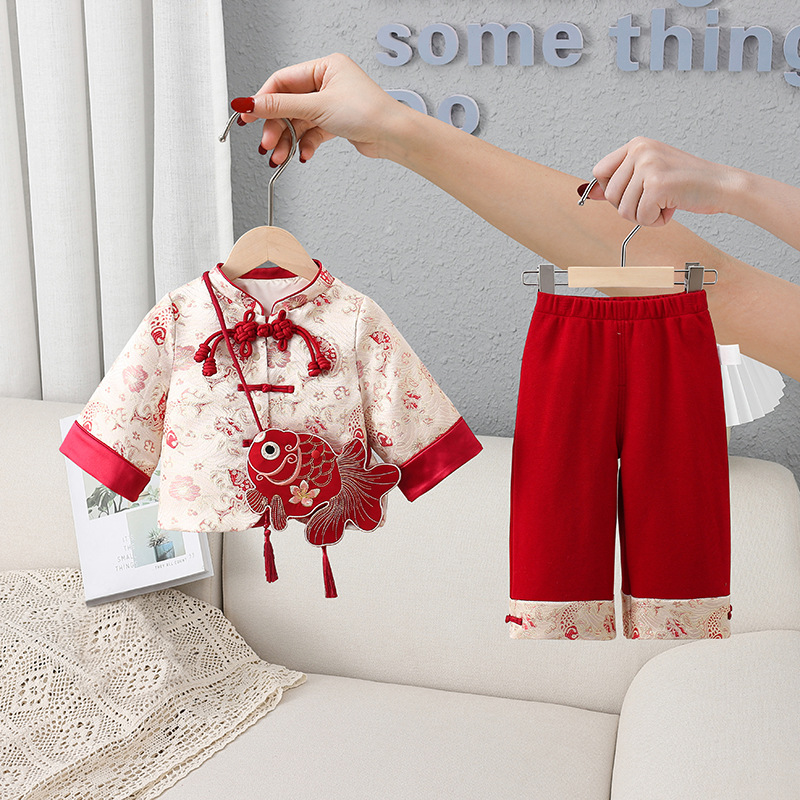 天静童装2024年春季新款女童套装喜庆中式儿童年服生日礼服两件套