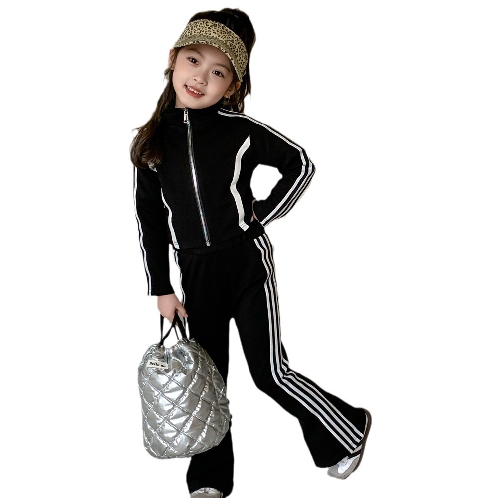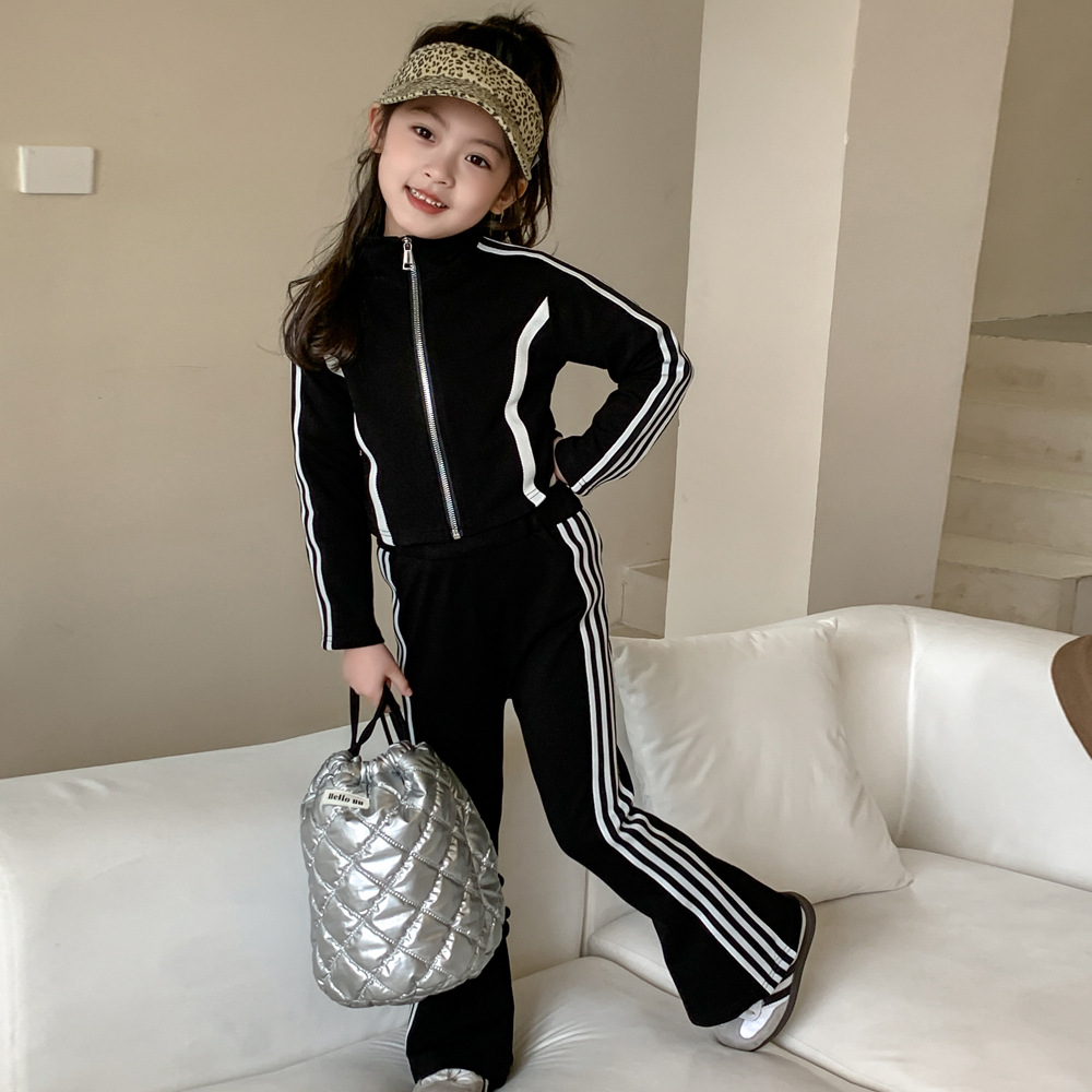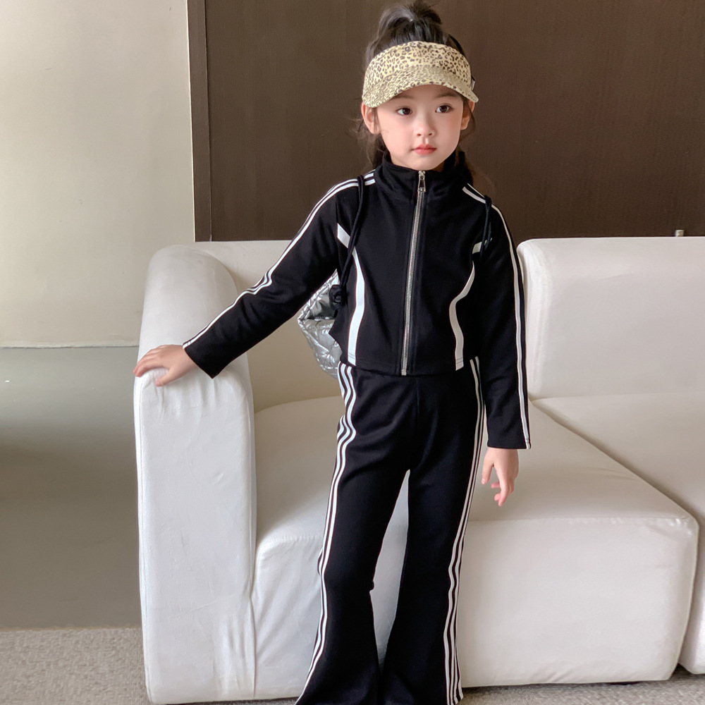 • 商品名称:童装2024春女童修身拼色休闲套装中大童女宝长袖外套喇叭裤两件套