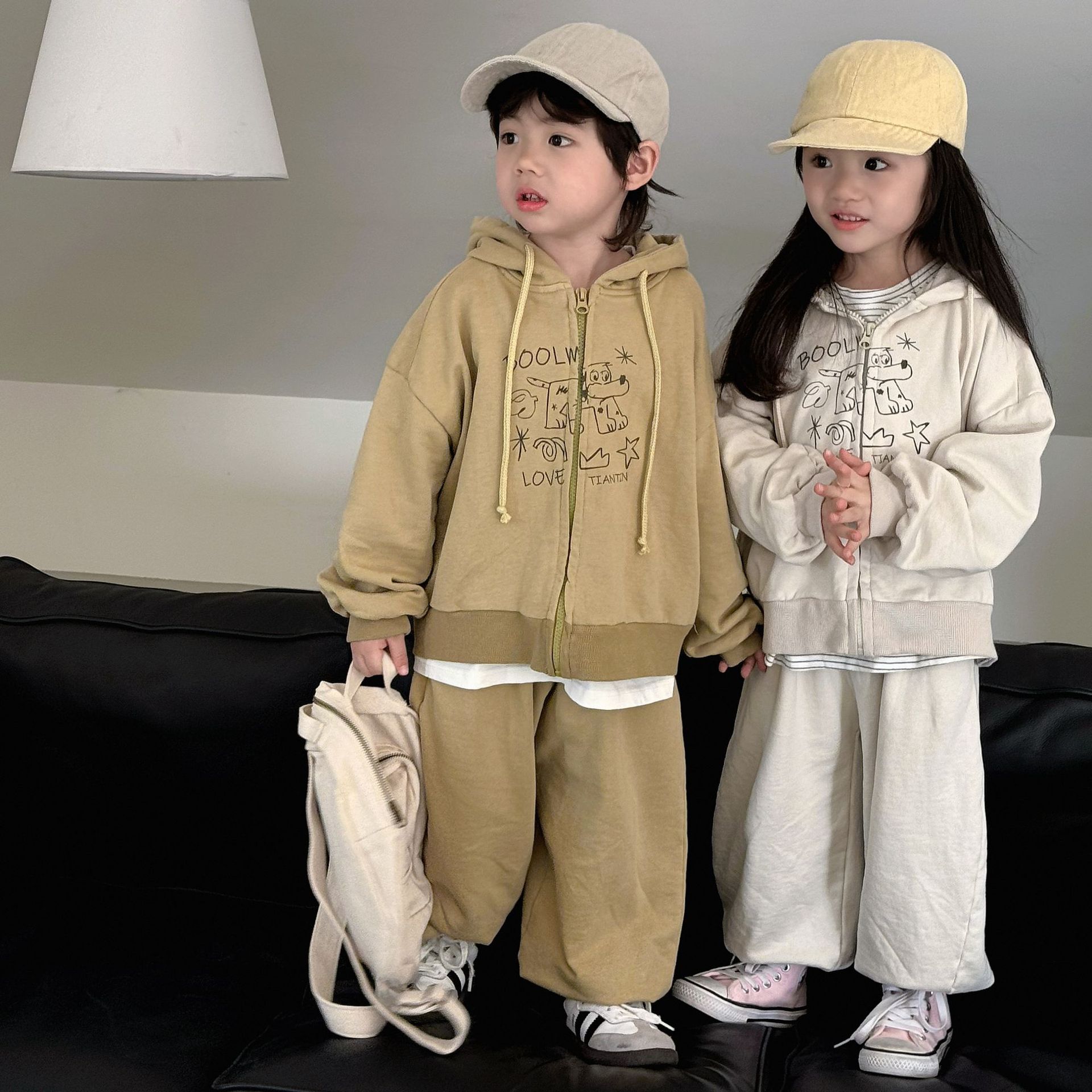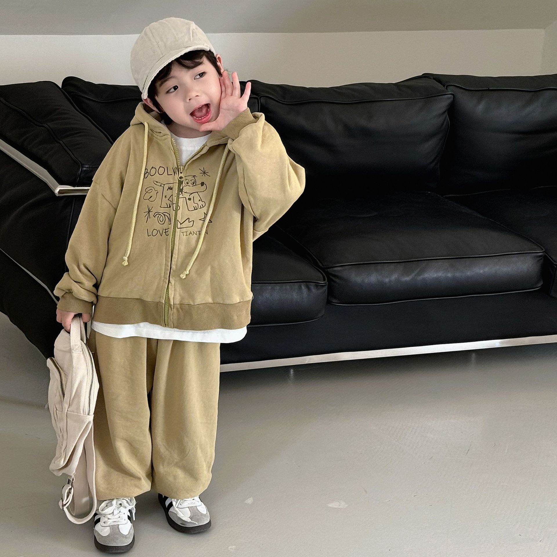 • 商品名称:春季韩版儿童运动套装中小童休闲卡通印花宽松卫衣开衫卫裤两件套