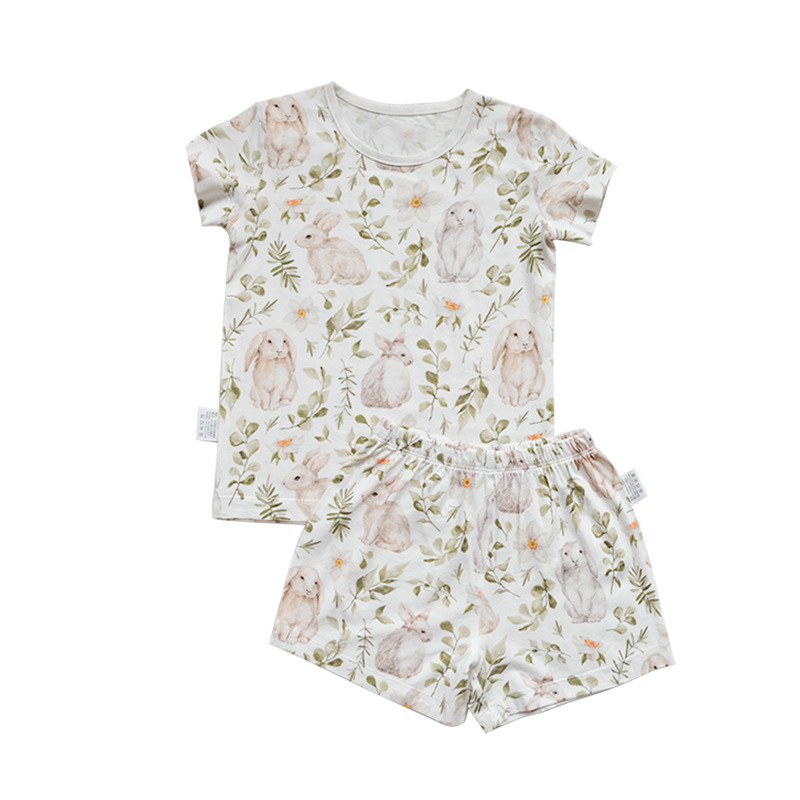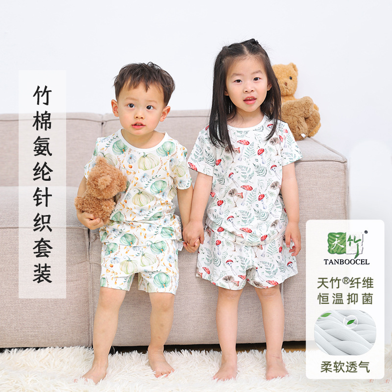 安旦春夏季薄款透气竹棉针织儿童家居服套装睡衣宝宝短袖短裤套装