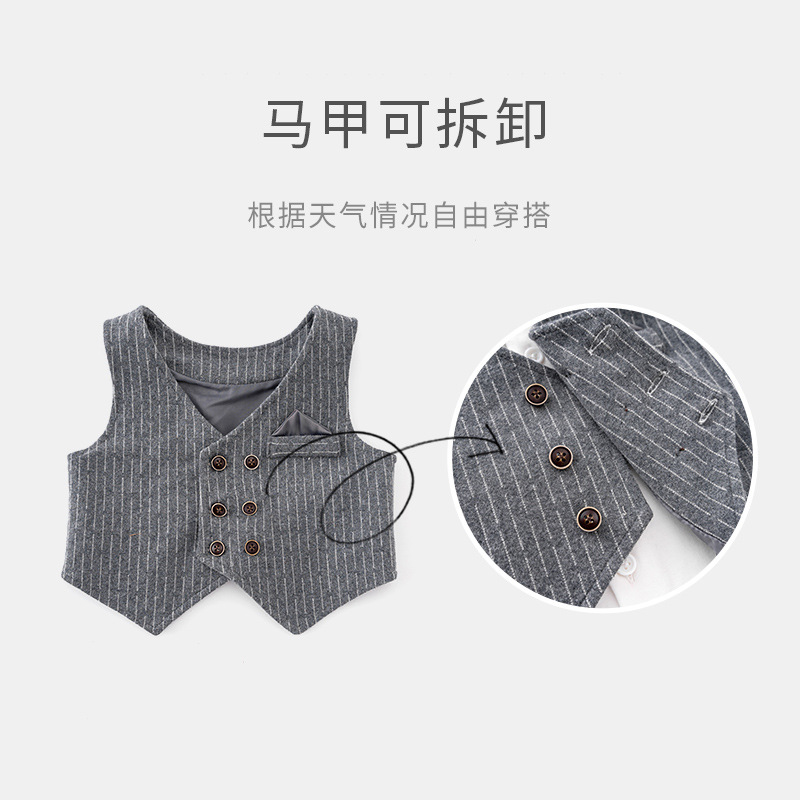 帅气男童套装春秋儿童衣服婴儿周岁礼服男宝宝马甲绅士三件套