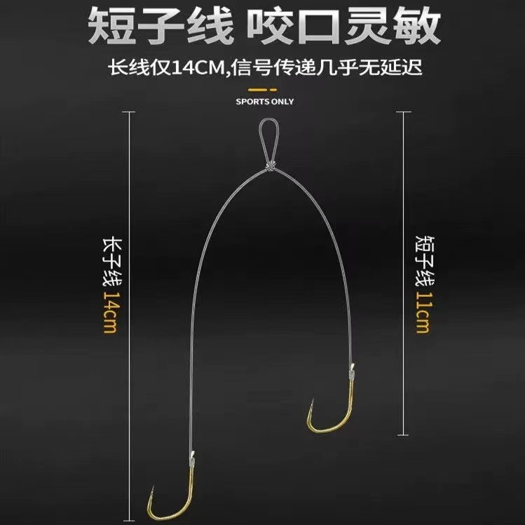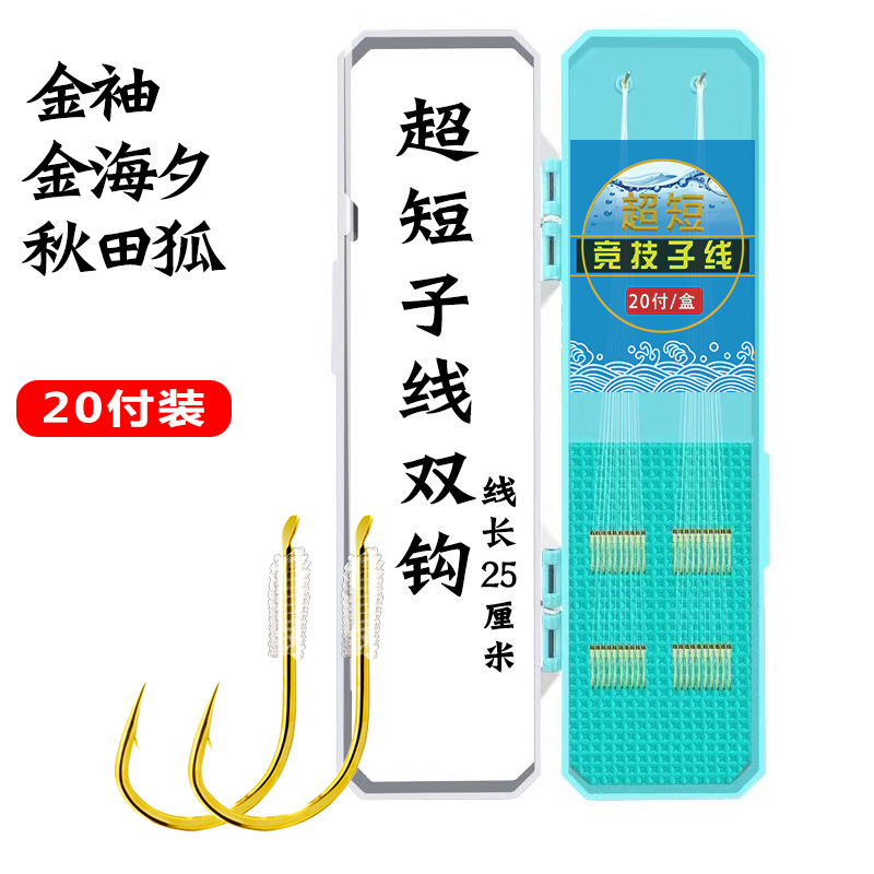 • 商品名称:25长短盒 子线双钩成品 金袖金海夕秋田狐鲫鱼钩20付盒装垂钓用品