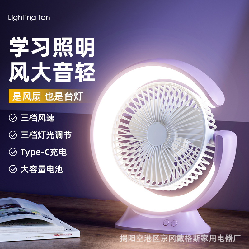 跨境户外家用usb充电台灯风扇便携桌面台式静音小风扇
