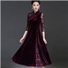 国风复古旗袍妈妈装 手绘碎花钉珠印花连衣裙修身显瘦中老年女装