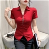 夏季新款洋气女装时尚镶钻拉链开叉短袖TPOLO领潮辣妹修身上衣
