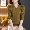 春装七分袖针织衫女小香风上衣2023年春夏爆款中年妈妈v领打底衫