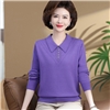 中老年女装时尚翻领春季毛衣针织衫大码宽松翻领妈妈装纯色上衣