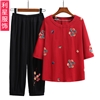 夏季新款中老年大码女装民族风刺绣七分袖T恤衫套装妈妈洋气上衣