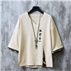2023夏季新款中国风男装棉麻刺绣知行合一短袖t恤复古五分袖潮男