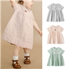 女童棉麻手工刺绣连衣裙洋气宝宝公主裙宽松长款短袖娃娃翻领裙子