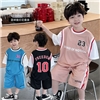 童酷2024儿童夏季新款韩版宝宝字母印花假两件短袖篮球服男童套装